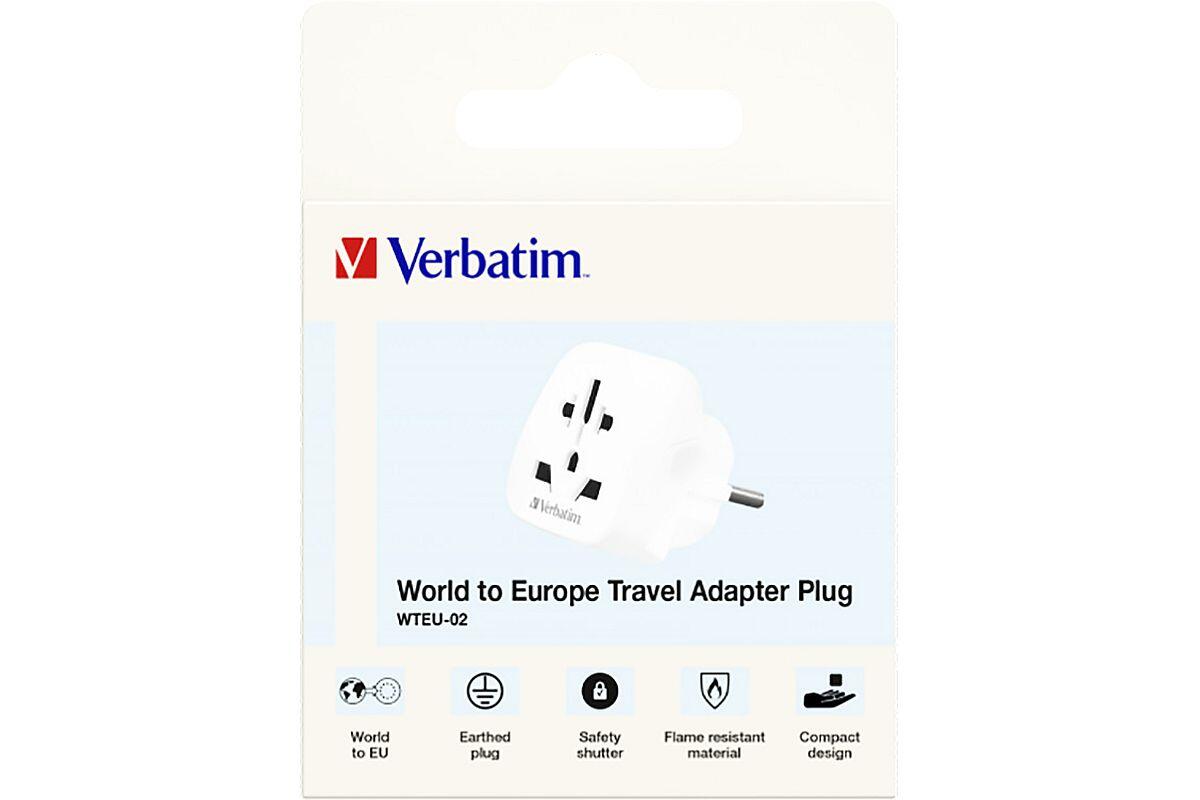 Adaptér cestovní Verbatim World-to-Europe WTEU-02, univerzální, bílý