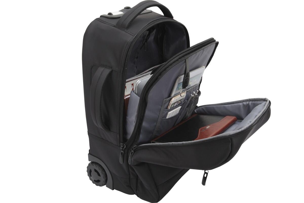 - vnitřní organizér, dvě prostorné kapsy na laptop 15.6" a na 10" tablet, přední kapsa se skrytým zipem, tichá kolečka, skryté ramenní popruhy pro nošení na zádech