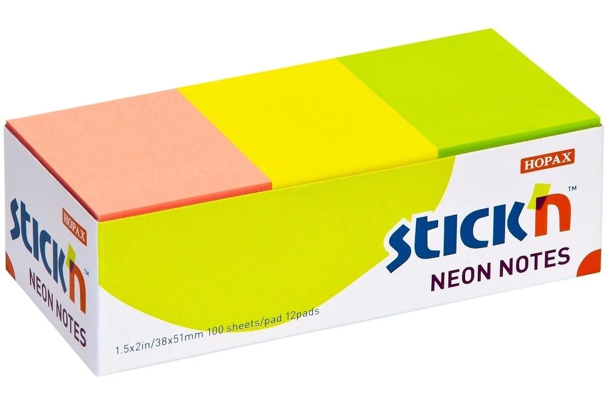 Bloček samolepicí Stick'n by Hopax, 38 x 51 mm, 12 x 100 lístků, neonový mix