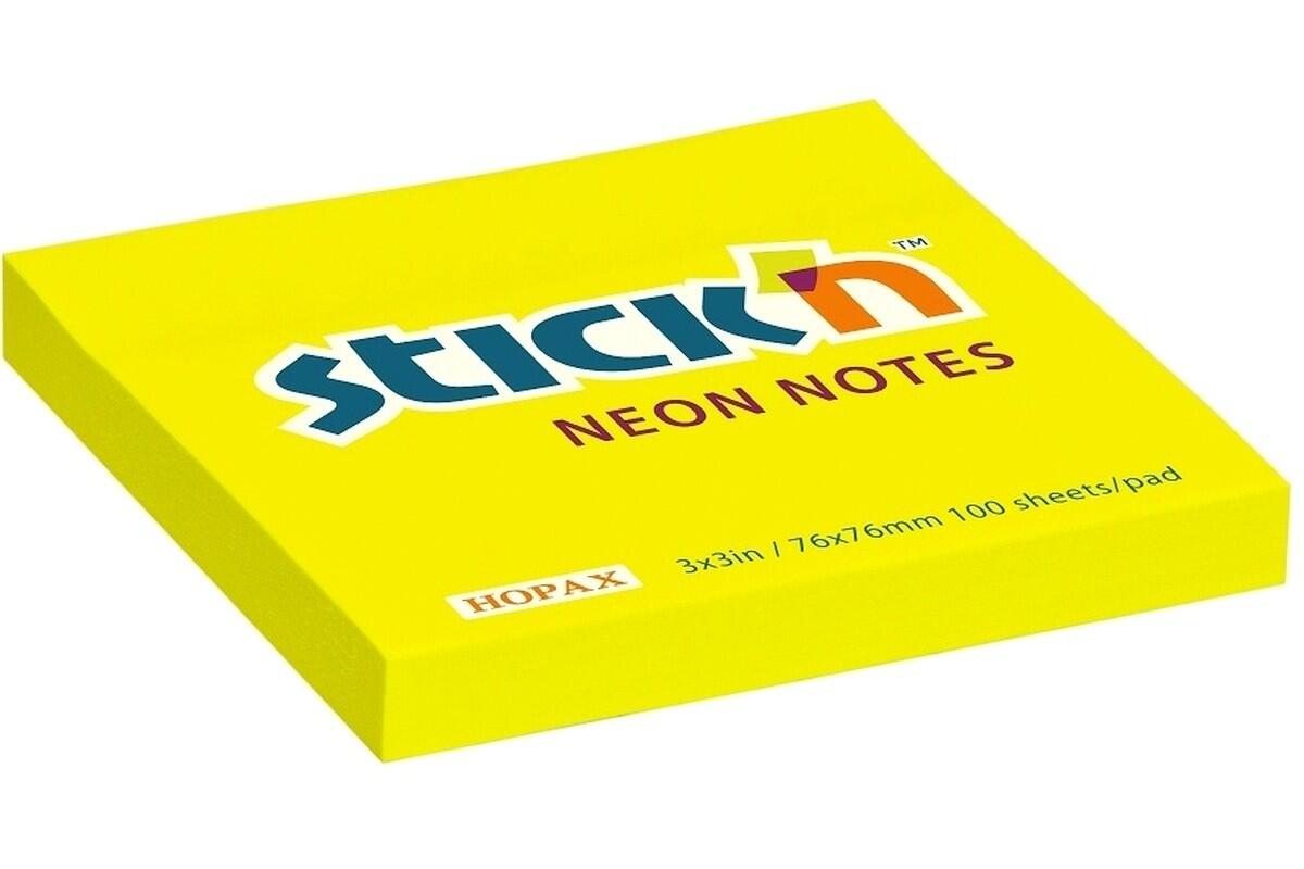 Bloček samolepicí Stick'n by Hopax, 76 x 76 mm, 100 lístků, neonově žlutý