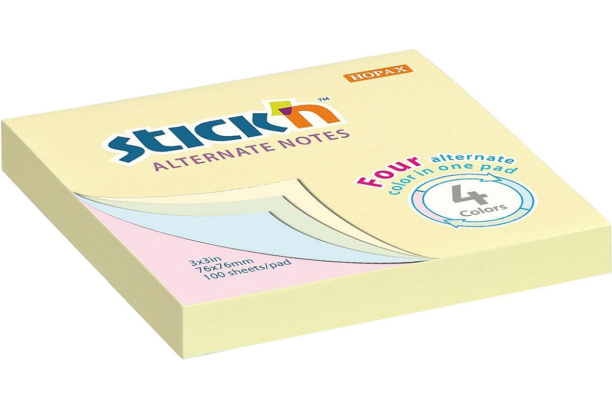 Bloček samolepicí Stick'n by Hopax ALTERNATE, 76 x 76 mm, 100 lístků, pastelový mix