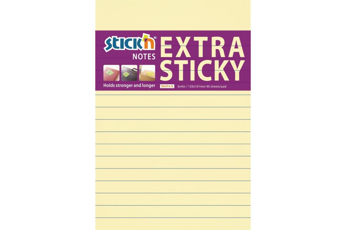 Bloček samolepicí Stick'n by Hopax EXTRA STICKY, 150 x 101 mm, linkovaný, 90 lístků, pastelově žlutý