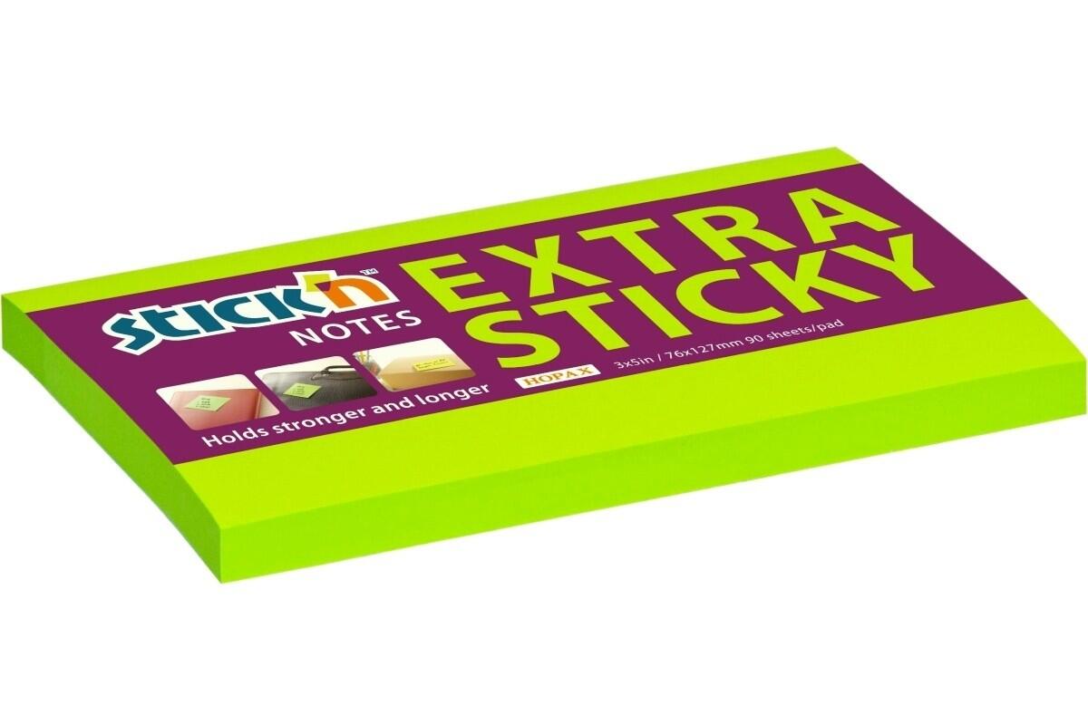 Bloček samolepicí Stick'n by Hopax EXTRA STICKY, 76 x 127 mm, 90 lístků, neonově zelený