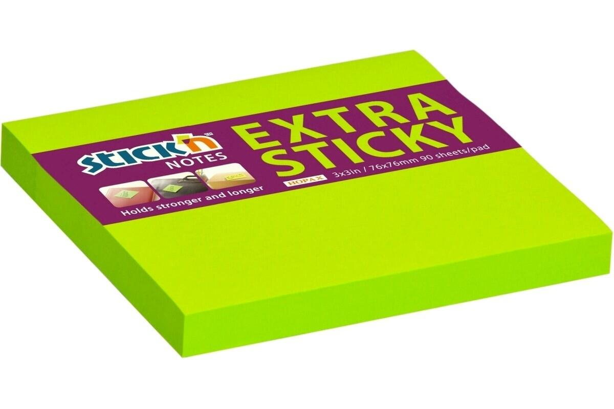 Bloček samolepicí Stick'n by Hopax EXTRA STICKY, 76 x 76 mm, 90 lístků, neonově zelený
