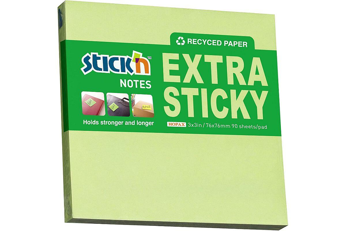 Bloček samolepicí Stick'n by Hopax EXTRA STICKY, 76 x 76 mm, recyklovaný, 90 lístků, zelený