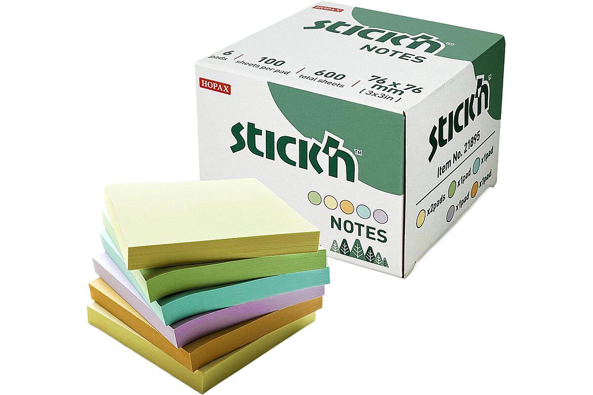 Bloček samolepící Stick'n by Hopax FSC, 76 x 76 mm, 6 x 100 lístků, pastelový mix