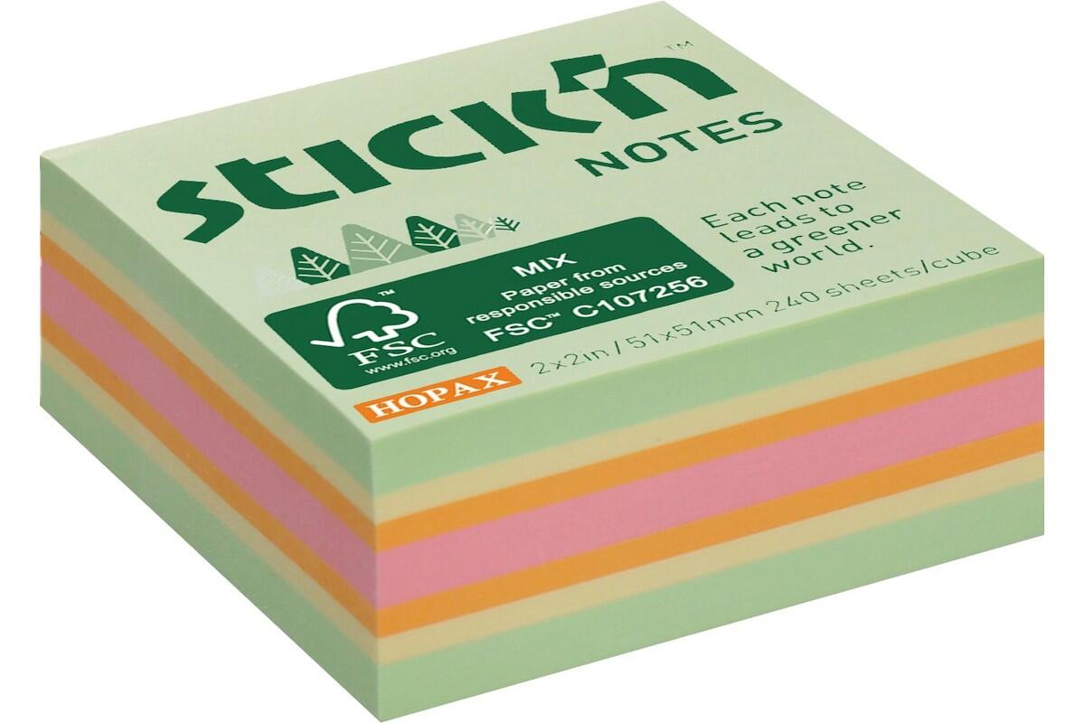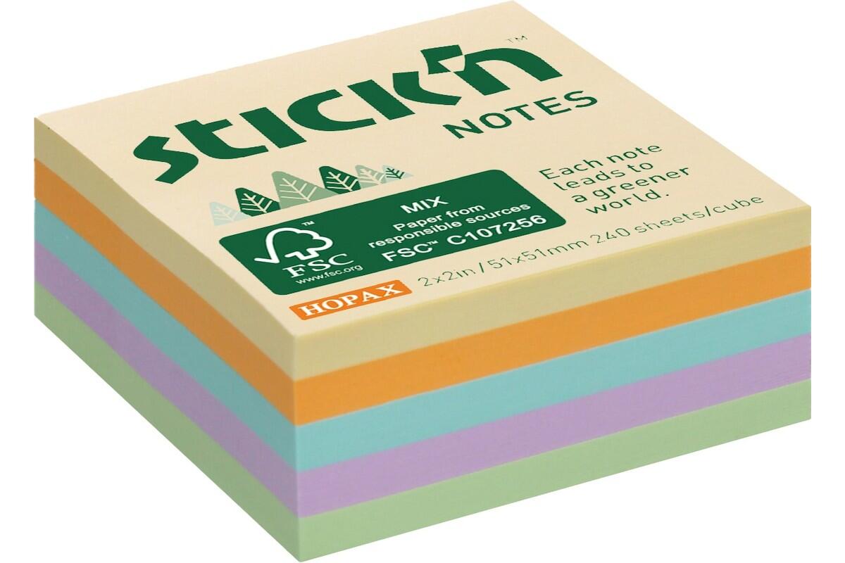 Bloček samolepící Stick'n by Hopax FSC kostka, 51 x 51 mm, 240 lístků, pastelový mix