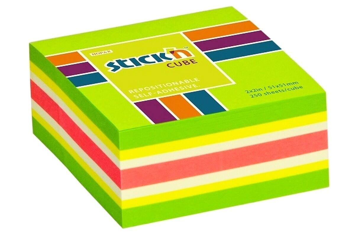 Bloček samolepicí Stick'n by Hopax kostka, 51 x 51 mm, 250 lístků, neonově zelený