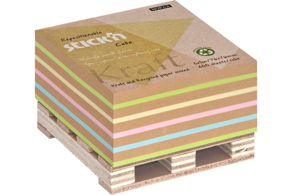 Bloček samolepicí Stick'n by Hopax kostka Kraft, 76 x 76 mm, na paletce, 400 lístků, barevný mix