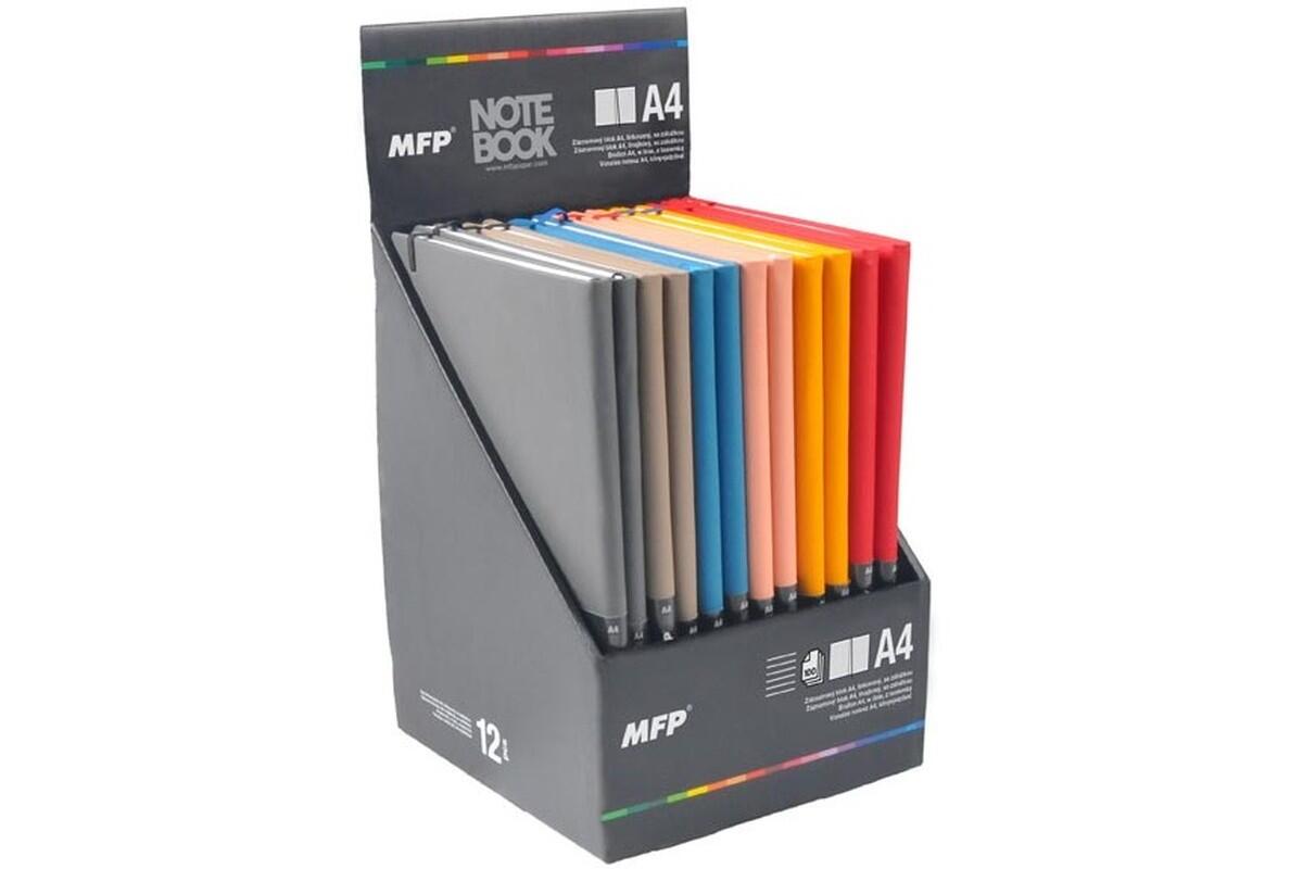 Blok A4 lepený MFP, s gumičkou, linkovaný, 100 listů, mix barev