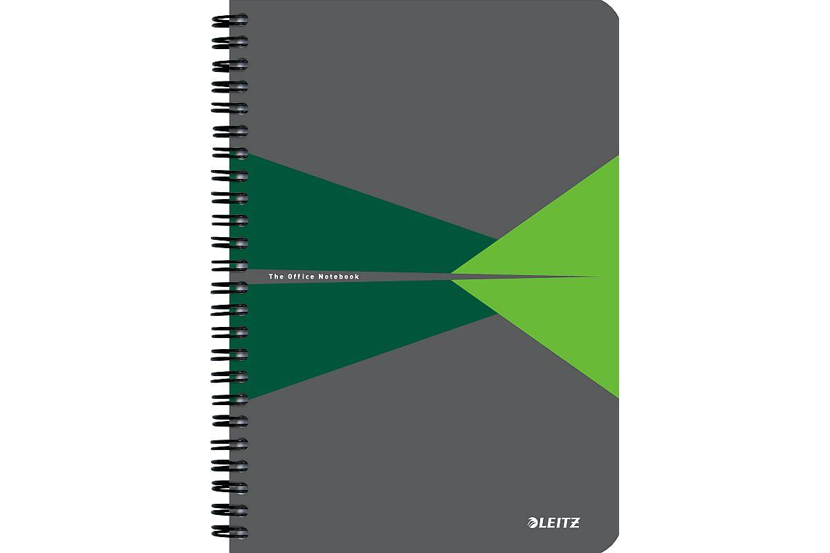 Blok A5 s boční spirálou Leitz Office, linkovaný, 90 listů, laminované desky, zelený