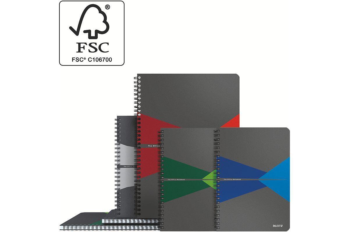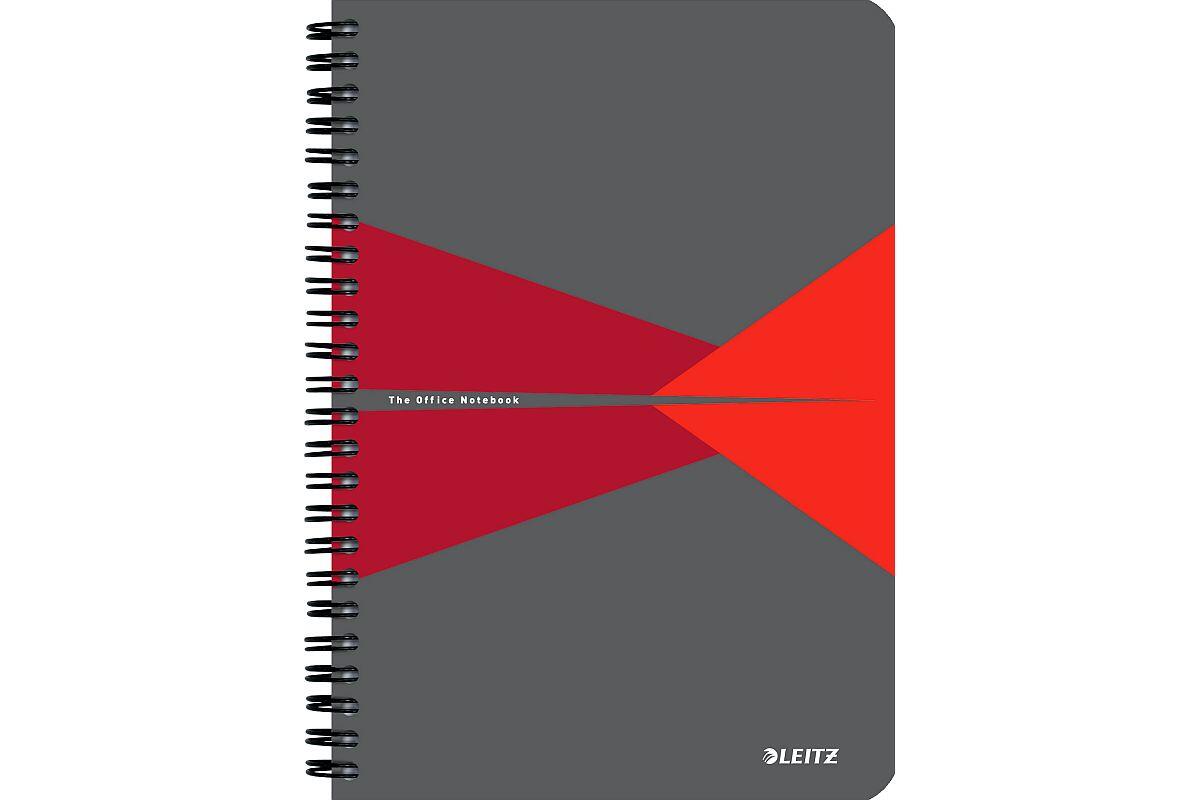 Blok A5 s boční spirálou Leitz Office, linkovaný, 90 listů, plastové desky, červený