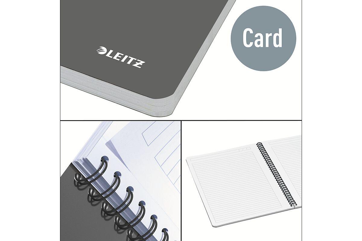 - drátěná vazba umožňuje otevření poznámkového bloku v rozsahu 360 stupňů, přehnutý na polovinu může sloužit jako podložka pro psaní poznámek na cestách