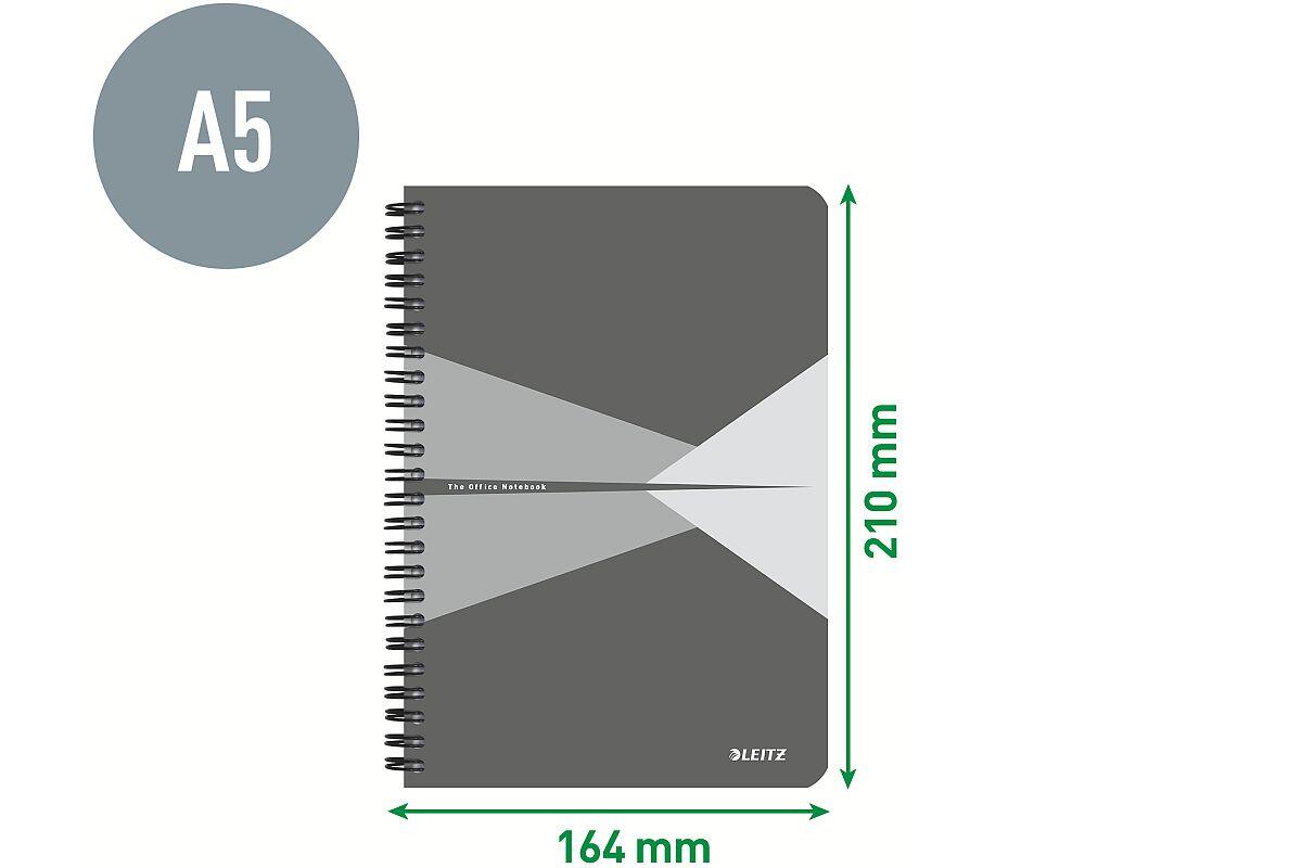 Blok A5 s boční spirálou Leitz Office, linkovaný, 90 listů, plastové desky, modrý