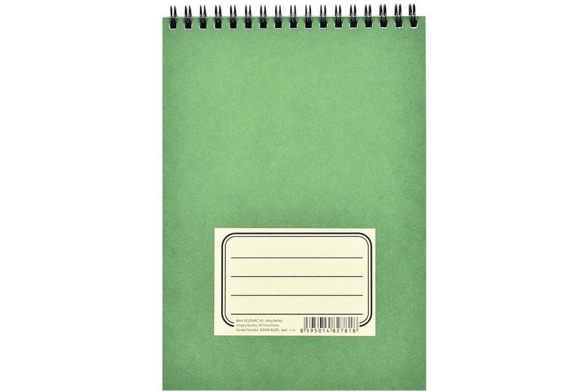 Blok A5 s horní spirálou Zelenáč, linkovaný a tečkovaný, 50 listů