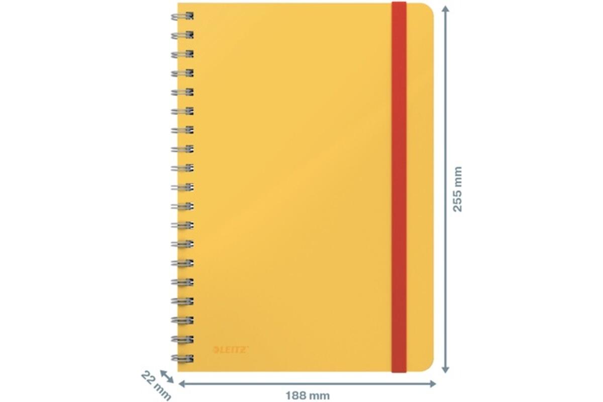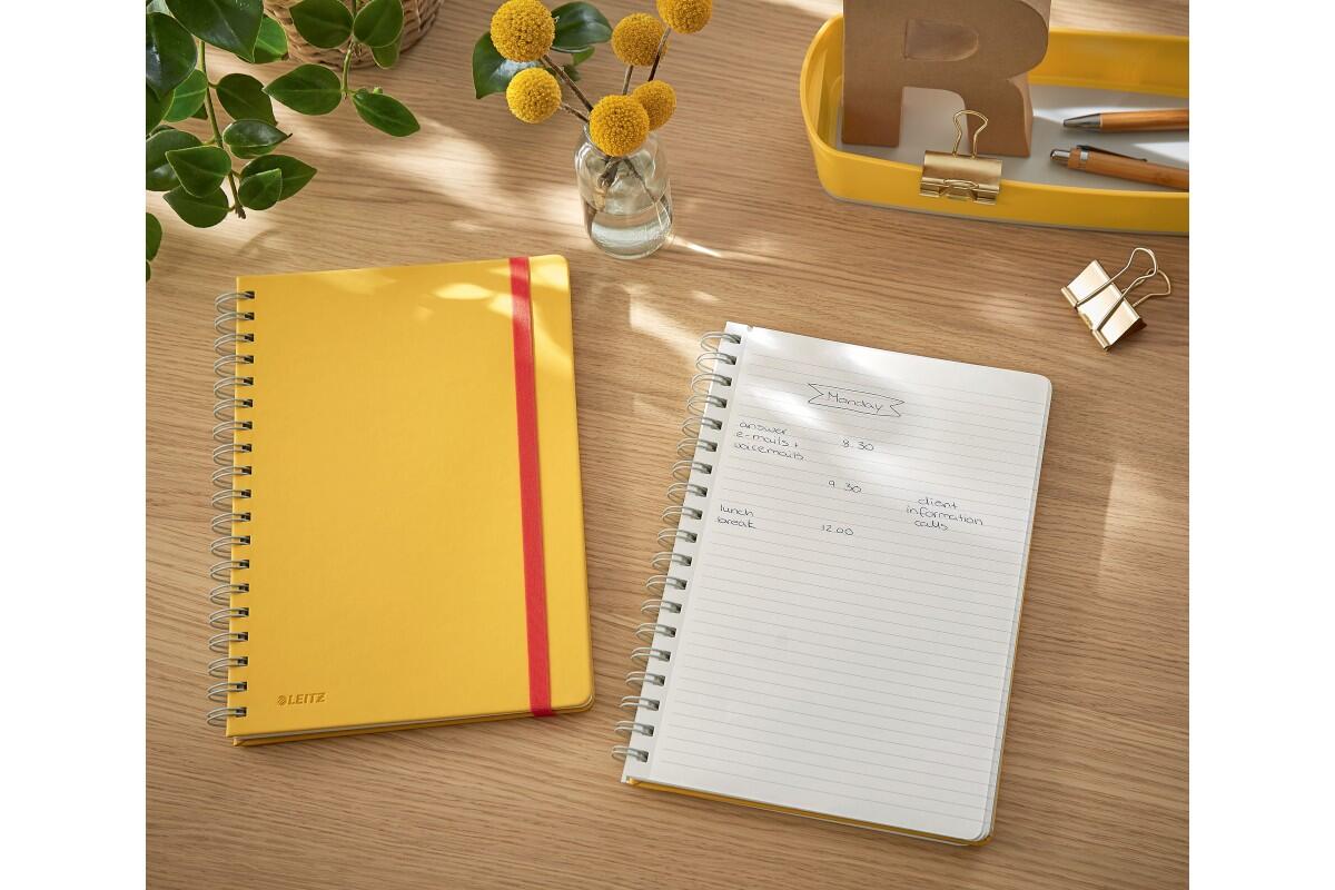 Blok B5 s boční spirálou Leitz Cosy, linkovaný, hebké desky, 100 listů, teplá žlutá