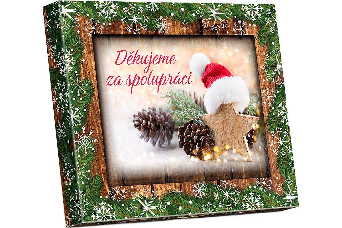 Bonboniéra Plněné čokoládové lodičky s ořechy, 125 g, Vánoce – dřevo a jehličí, Děkujeme za spolupráci