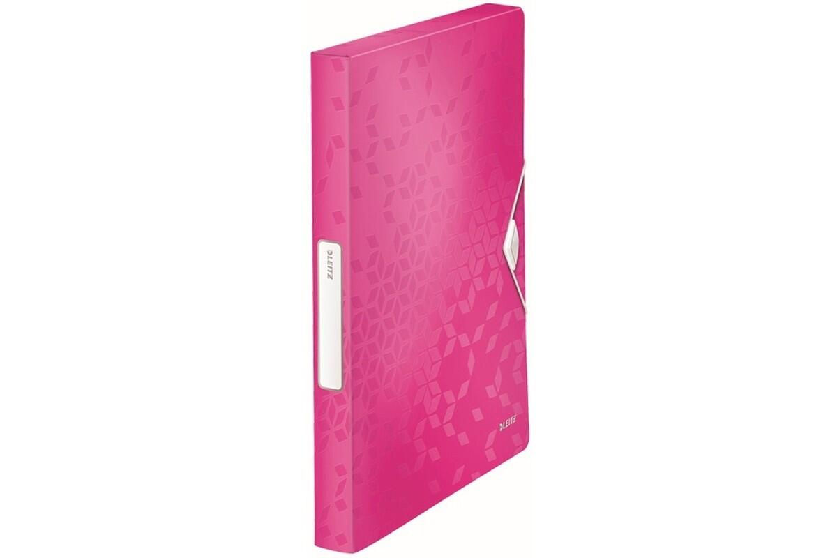 Box na spisy A4 Leitz WOW, celoplastový, s gumičkou, růžový