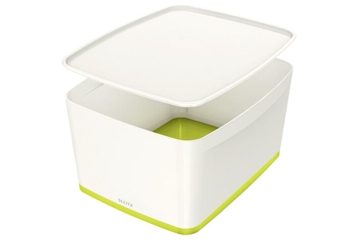Box úložný Leitz MyBox WOW, plastový, s víkem, velikost L, bílo-zelený