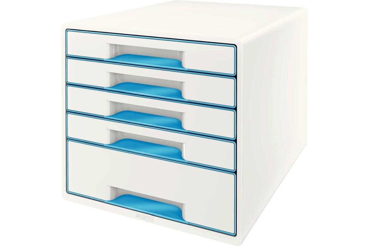 Box zásuvkový A4 Leitz WOW Cube, plastový, 5 zásuvek, bílo-světle modrý