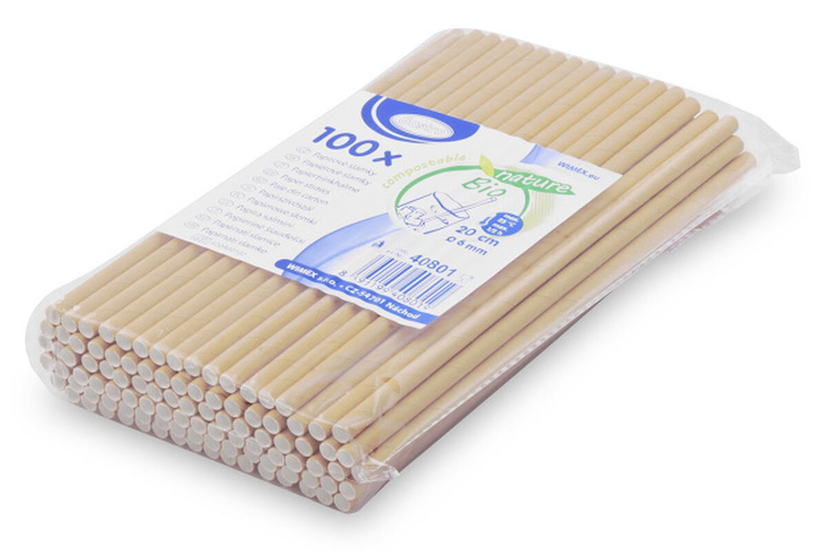 Brčko papírové, délka 20 cm, průměr 6 mm, kraft, 100 ks, hnědé
