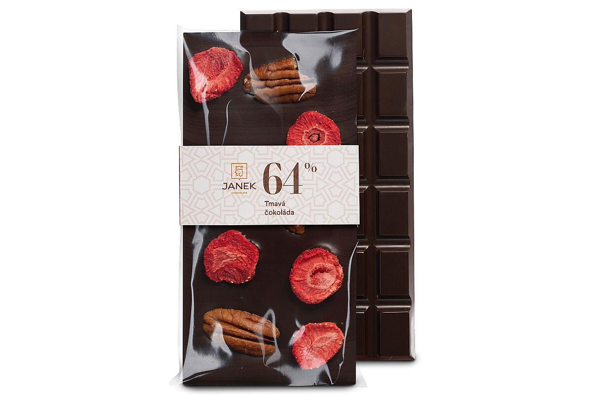 | 1913675 | Čokoláda hořká Janek, S pekanovými ořechy a lyofilizovanými jahodami, 95 g |