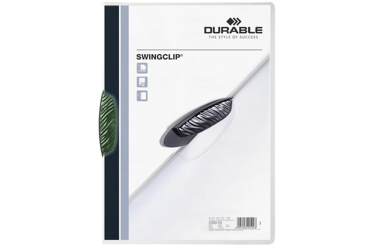 Desky A4 Durable Swingclip 2260, s plastovým klipem, 30 listů, zelené