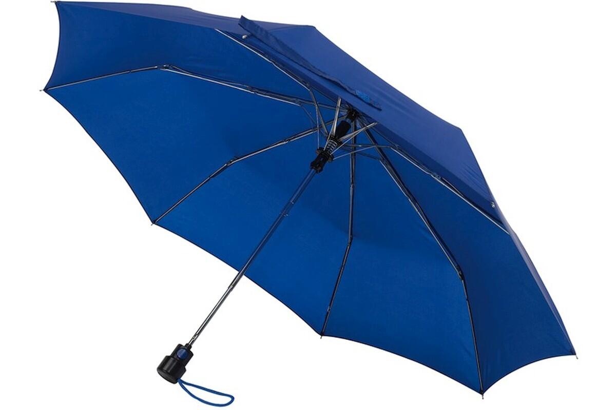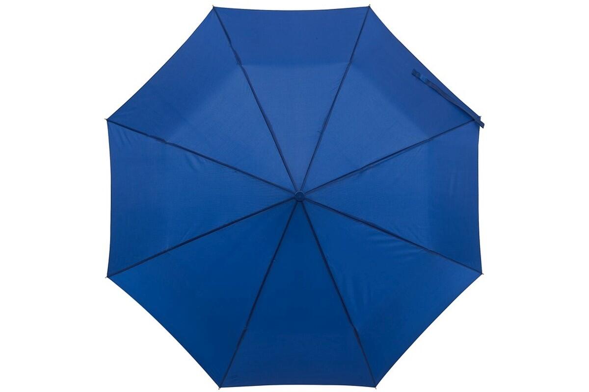 • automatický skládací deštník modré barvy s plastovou rukojetí a poutkem