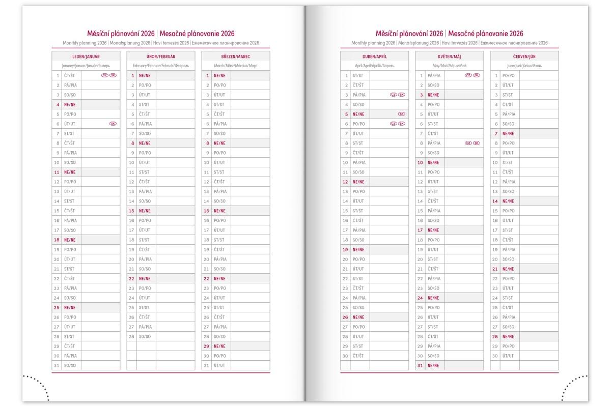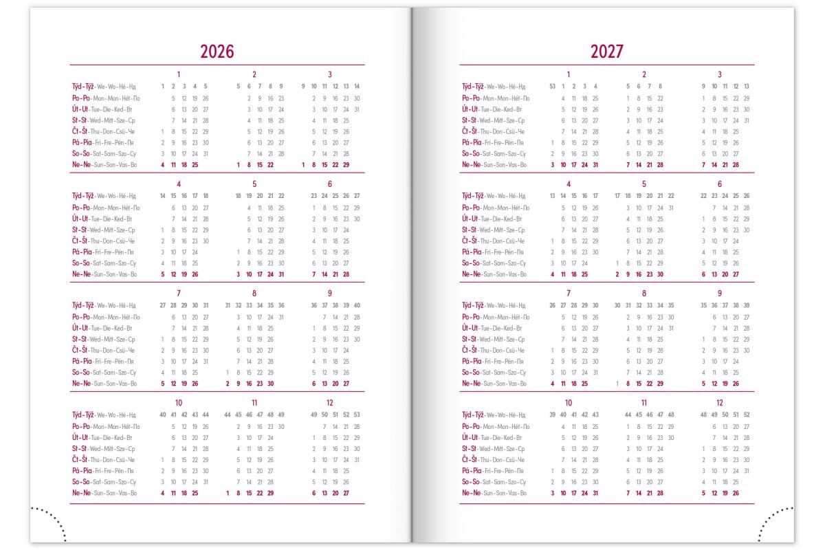 - 6jazyčné denní kalendárium (CZ, SK, EN, DE, HU, RU)
