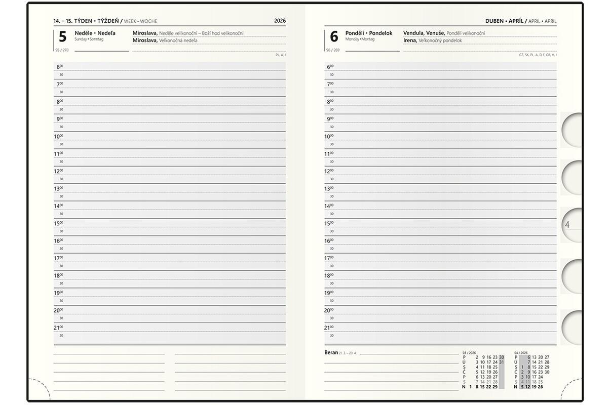 - velký prostor pro poznámky a plánování