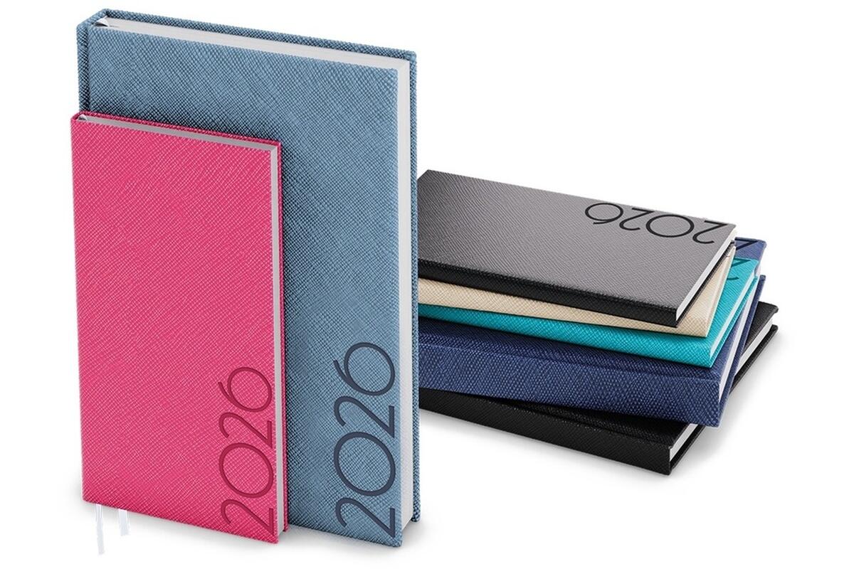 - neobyčejný diář s lesklým povrchem ze strukturovaného materiálu s ražbou roku