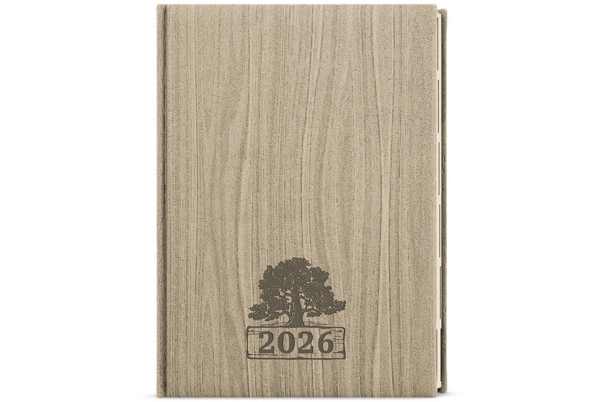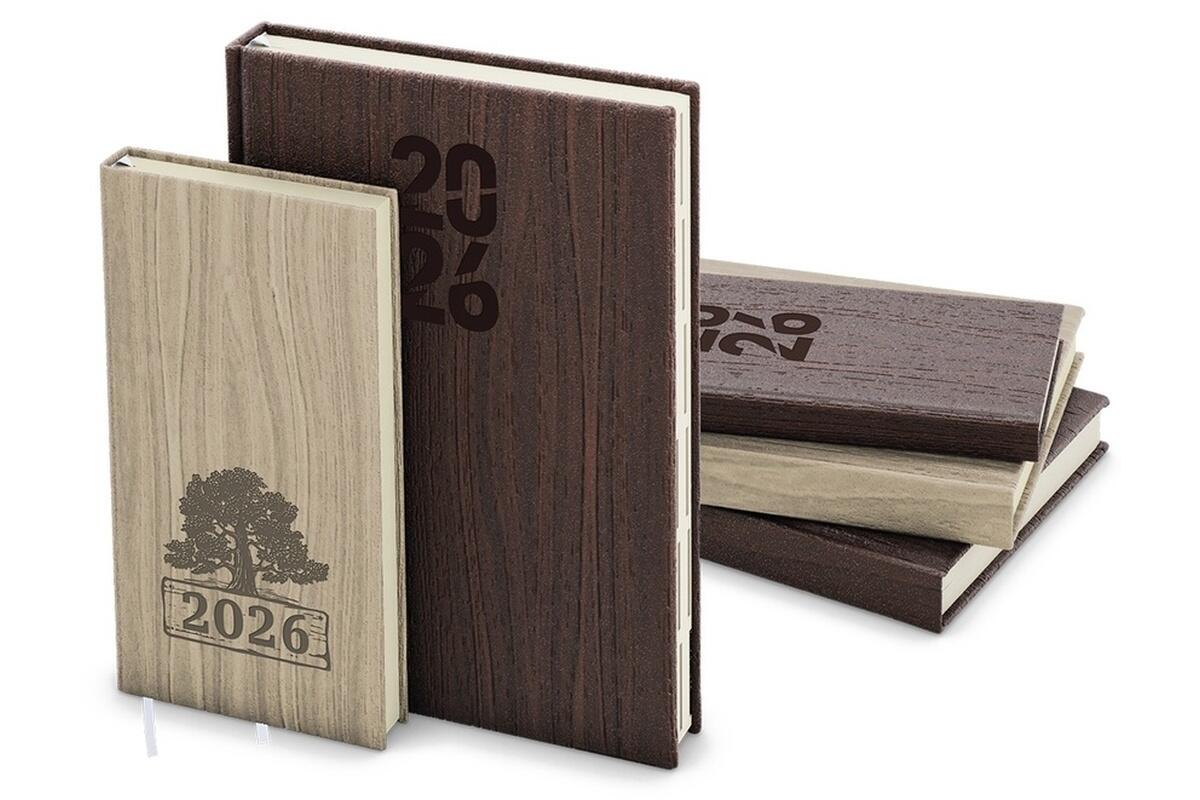 - originální diář s přírodním motivem dřeva a ražbou