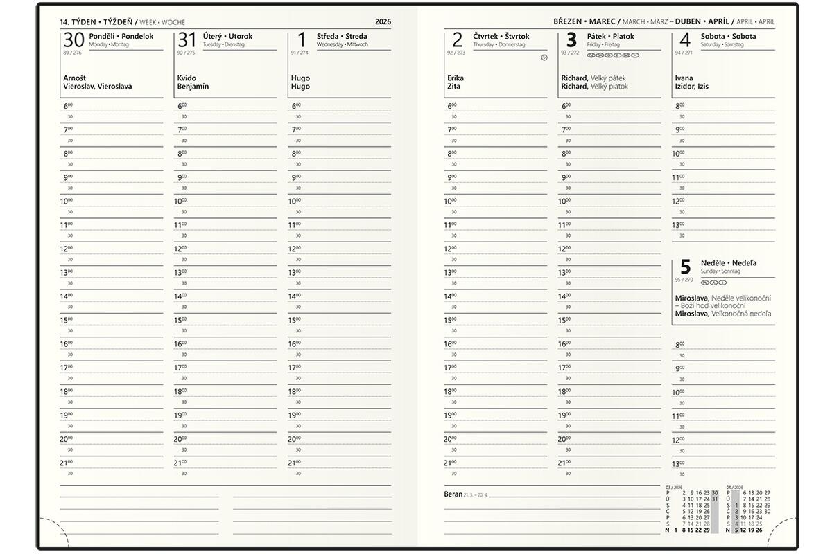 - velký prostor pro poznámky a plánování
