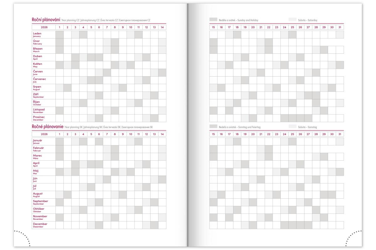 - 6jazyčné týdenní kalendárium: CZ, SK, EN, DE, HU, RU