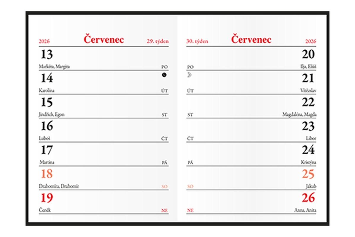 Diář týdenní kapesní Hynek, 5,7x8 cm, PVC, černý
