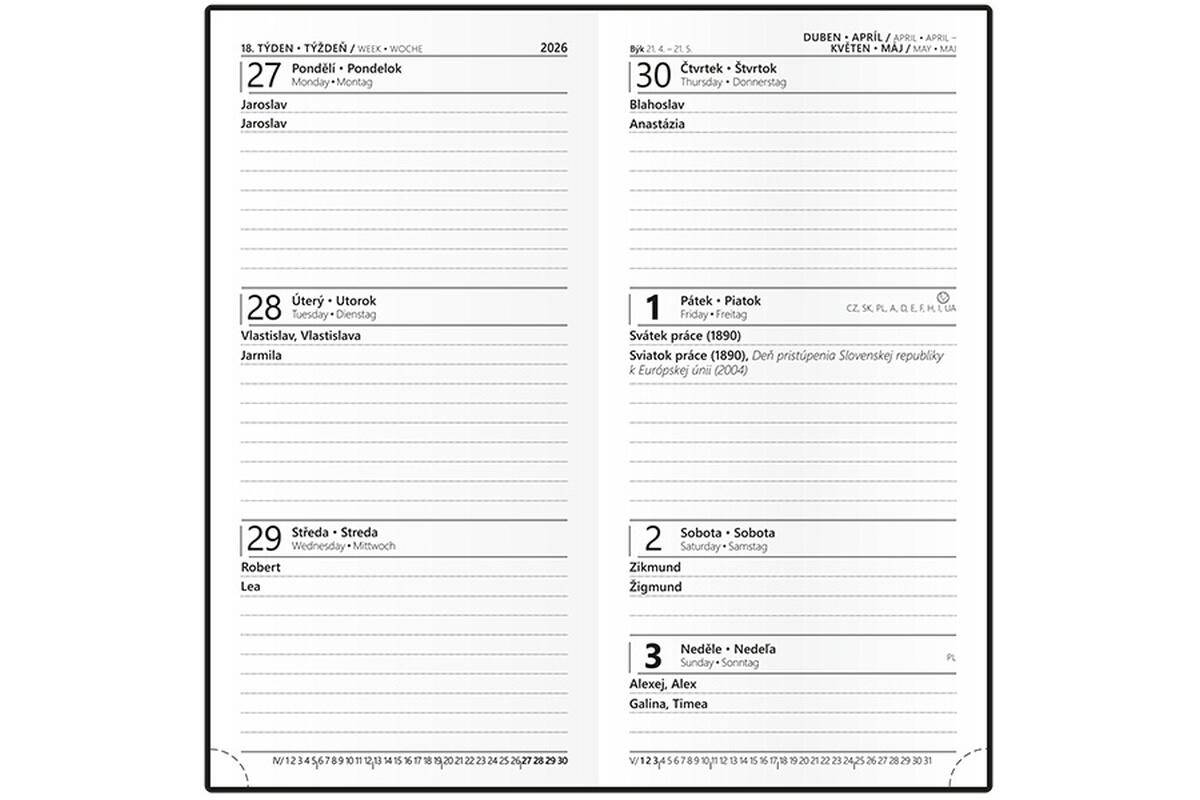 - české a slovenské týdenní kapesní jmenné kalendárium
