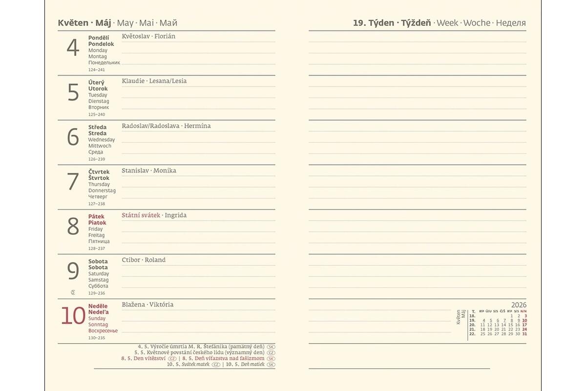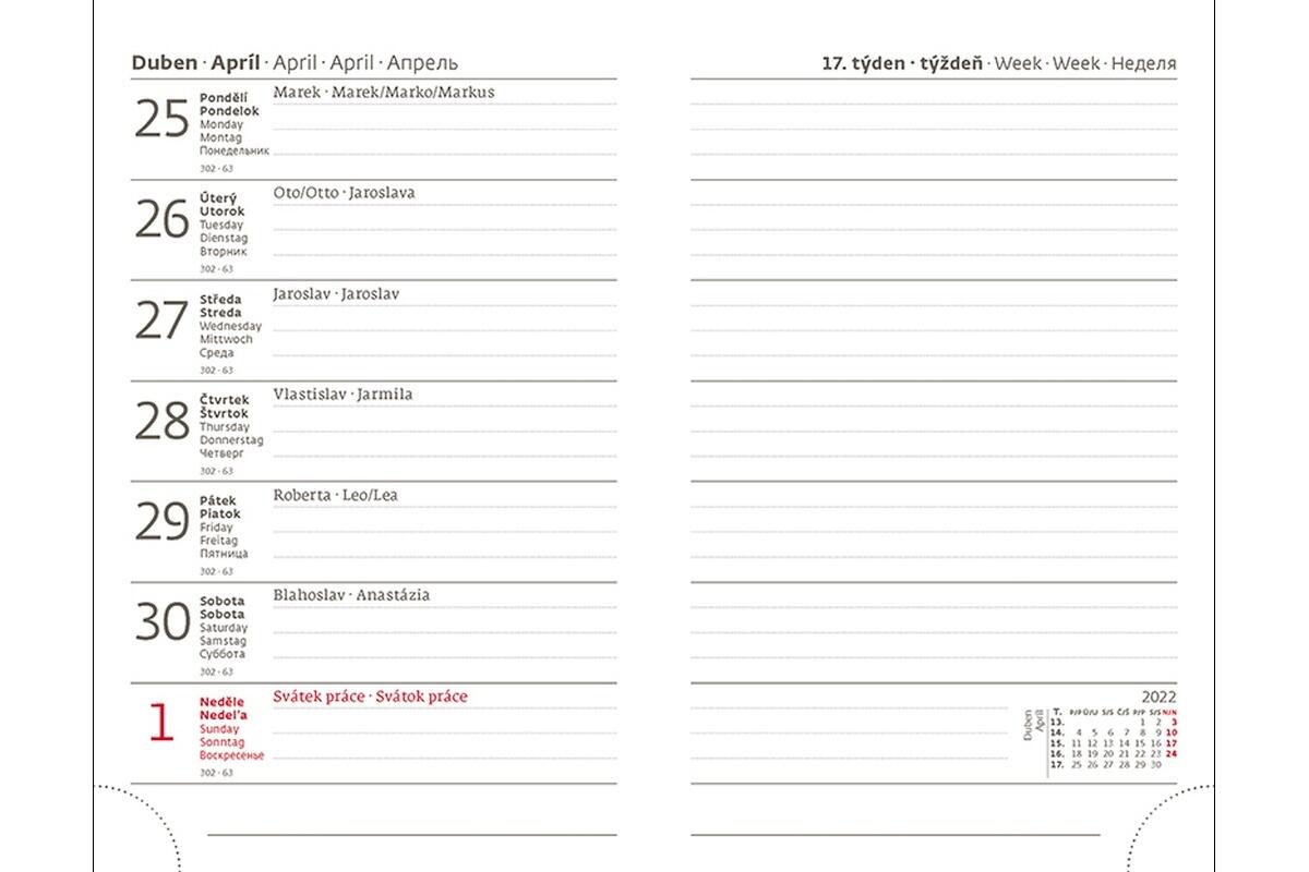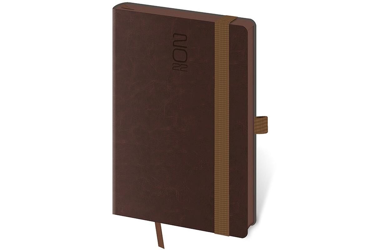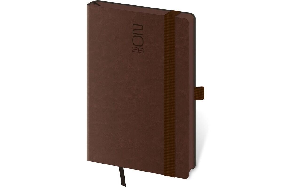 Diář týdenní kapesní Memory, 9 x 14 cm, s gumičkou, tmavě hnědý