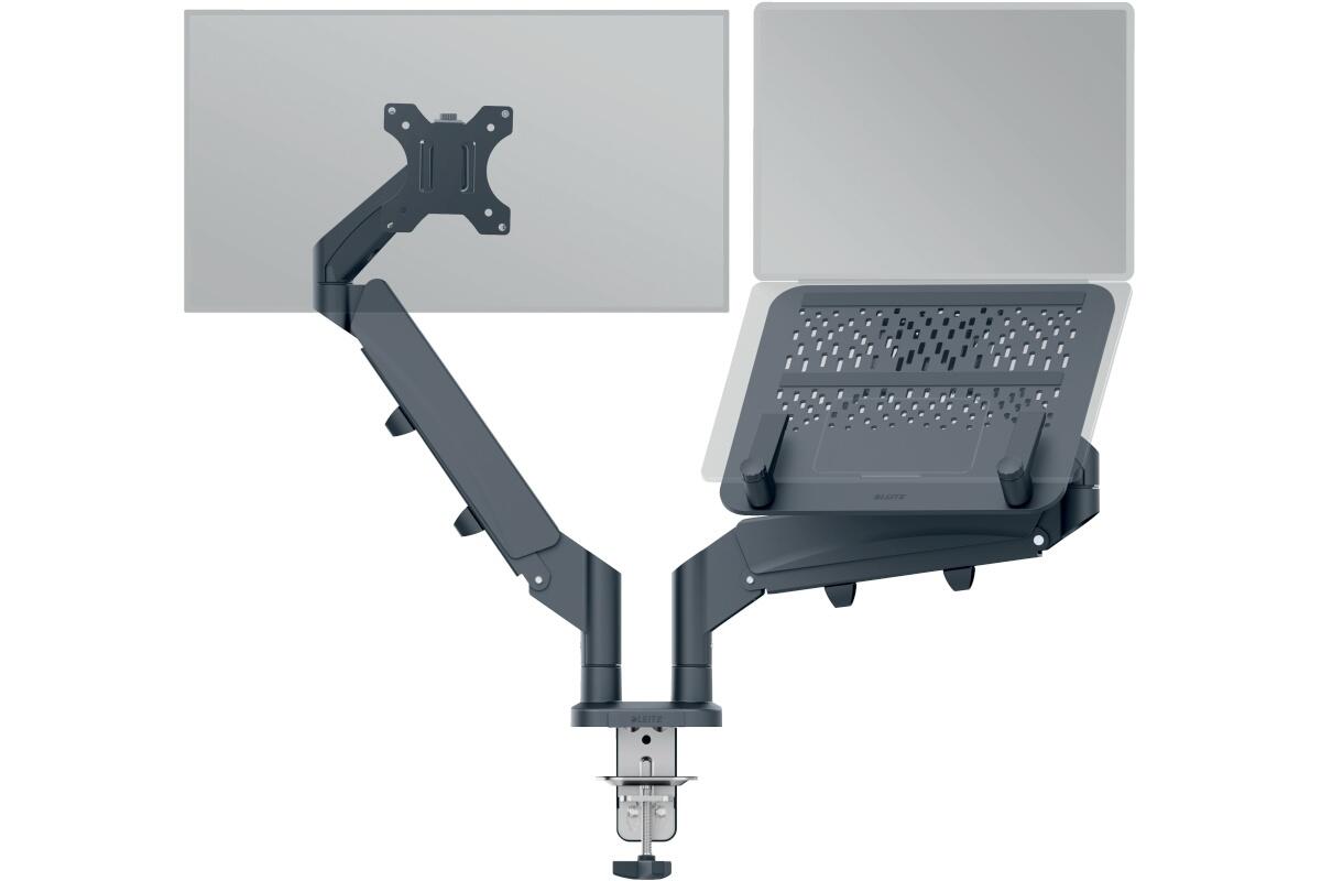 Držák monitorau a laptopu Leitz Ergo, dvojramenný, tmavé šedý