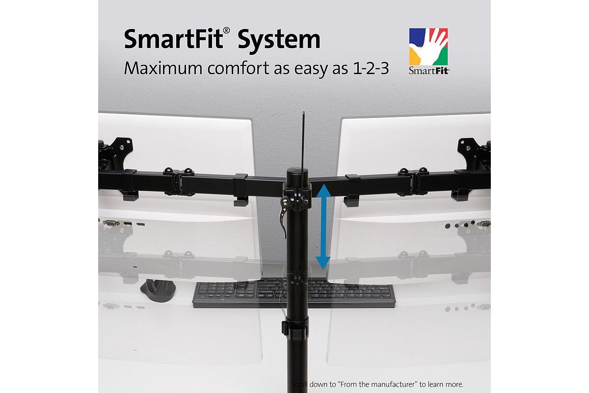 - s robustním a stabilním roztažitelným ramenem na dva monitory SmartFit® Ergo uvolníte cenný prostor na pracovním stole a zlepšíte ergonomii.