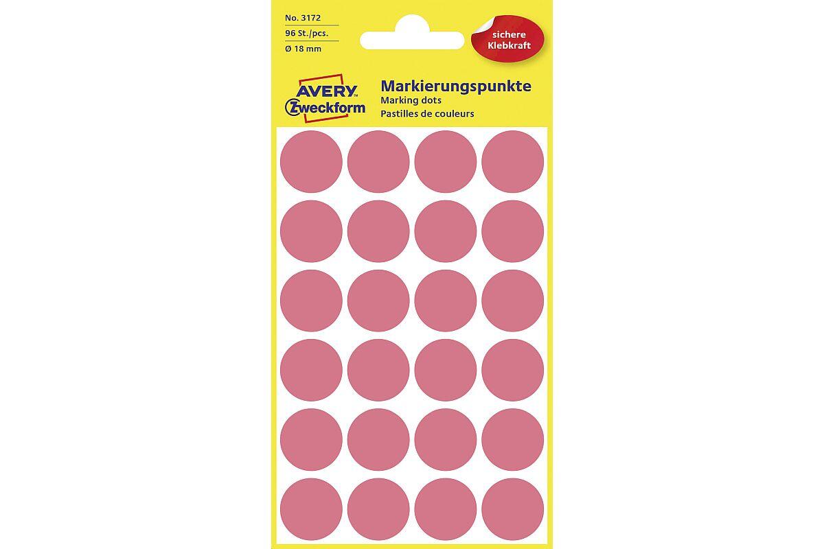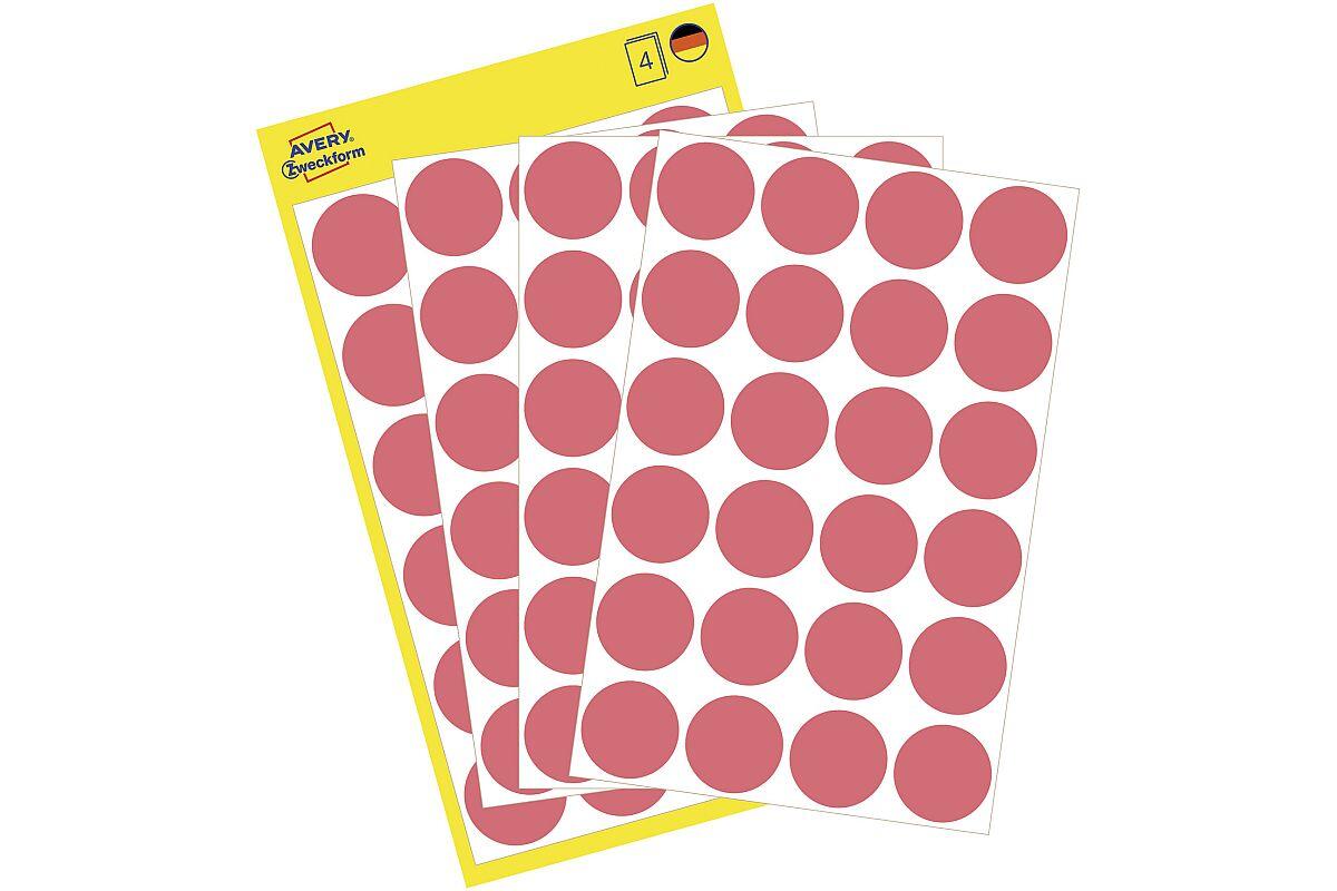 Etikety kulaté Avery Zweckform, průměr 18 mm, arch A6, 4 listy, 96 ks, reflexní červené