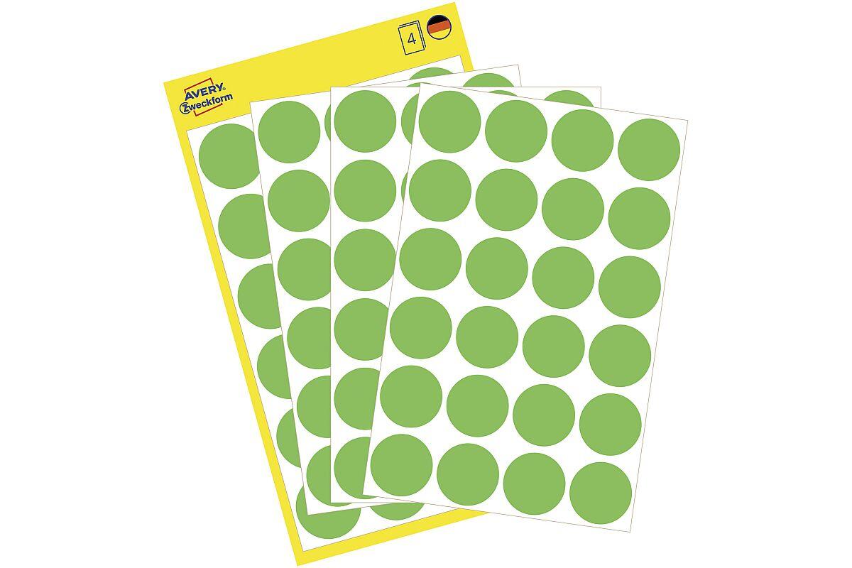 Etikety kulaté Avery Zweckform, průměr 18 mm, arch A6, 4 listy, 96 ks, reflexní zelené