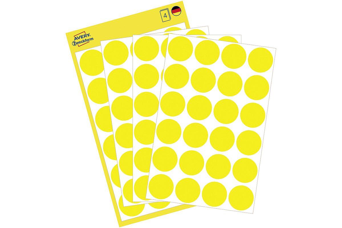 Etikety kulaté Avery Zweckform, průměr 18 mm, arch A6, 4 listy, 96 ks, žluté