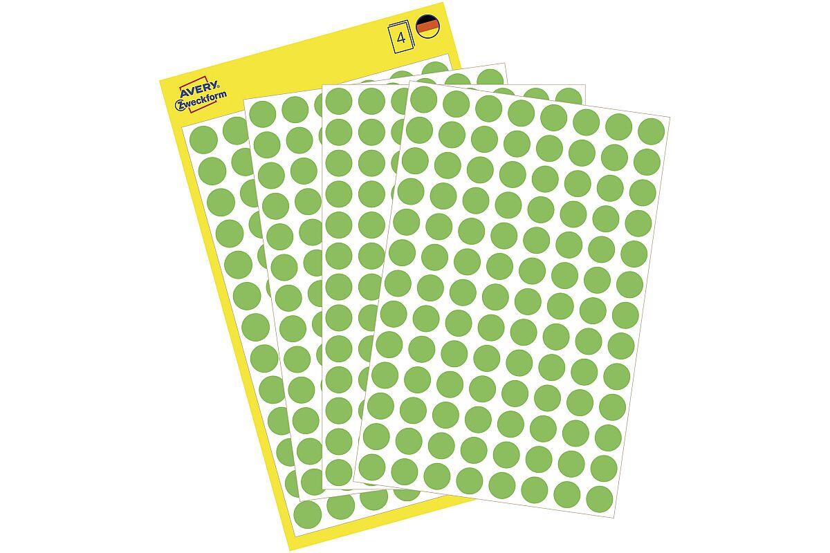 Etikety kulaté Avery Zweckform, průměr 8 mm, arch A6, 4 listy, 416 ks, reflexní zelené