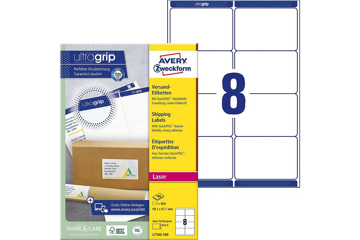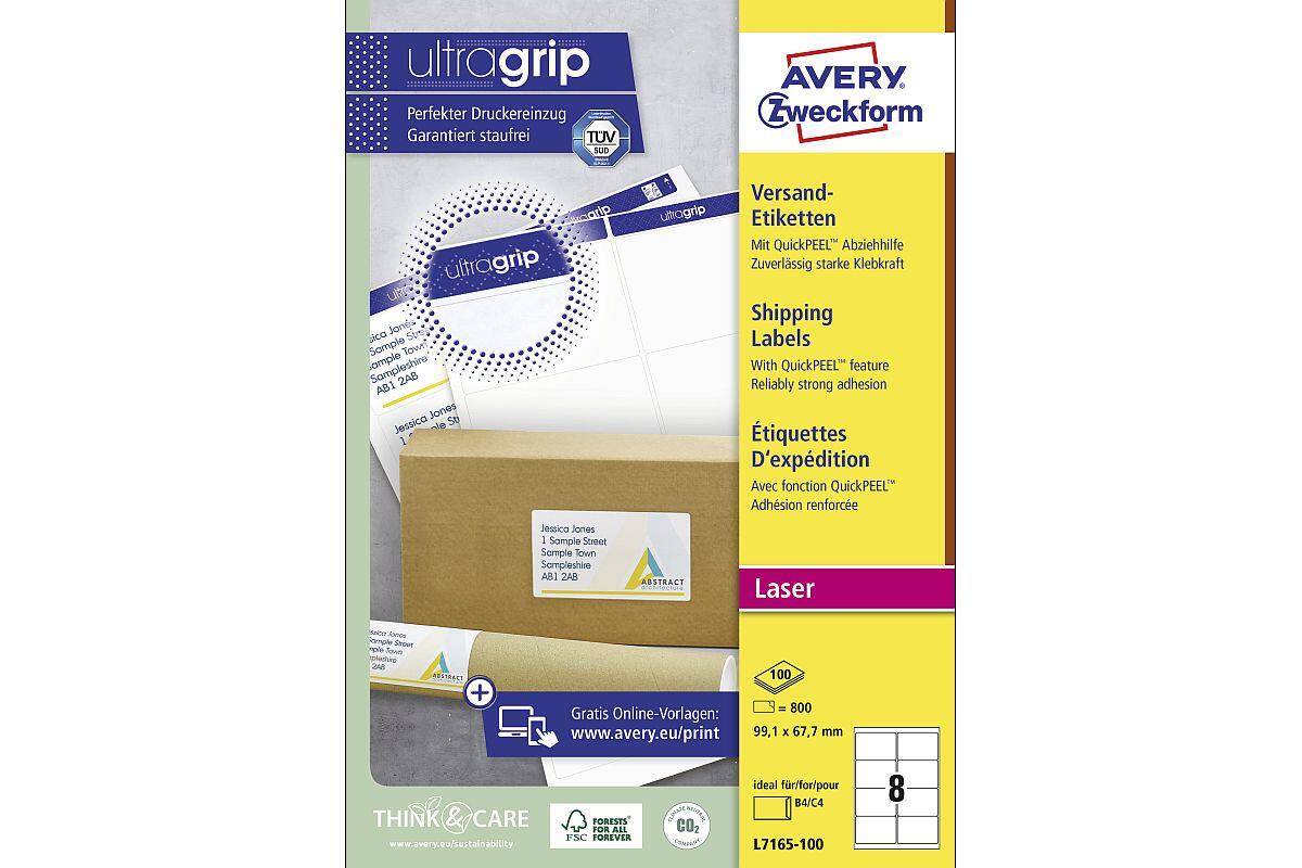 Etikety na balíky Avery Zweckform, 99,1 x 67,7 mm, arch A4, 100 listů, bílé