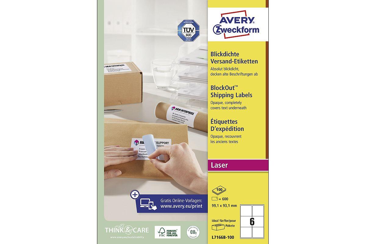 Etikety na balíky Avery Zweckform, 99,1 x 93,1 mm, arch A4, 100 listů, bílé