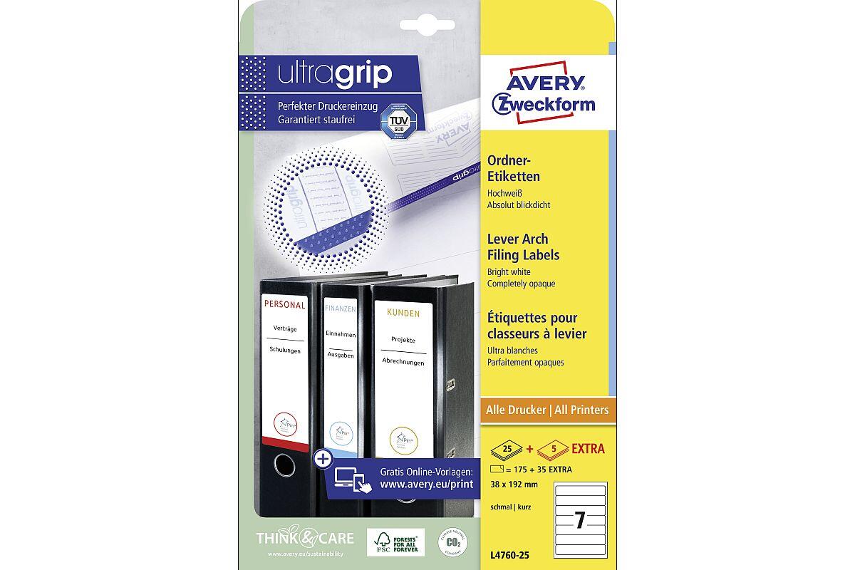 Etikety na pořadač Avery Zweckform, hřbet 5 cm, 25+5 listů, bílé