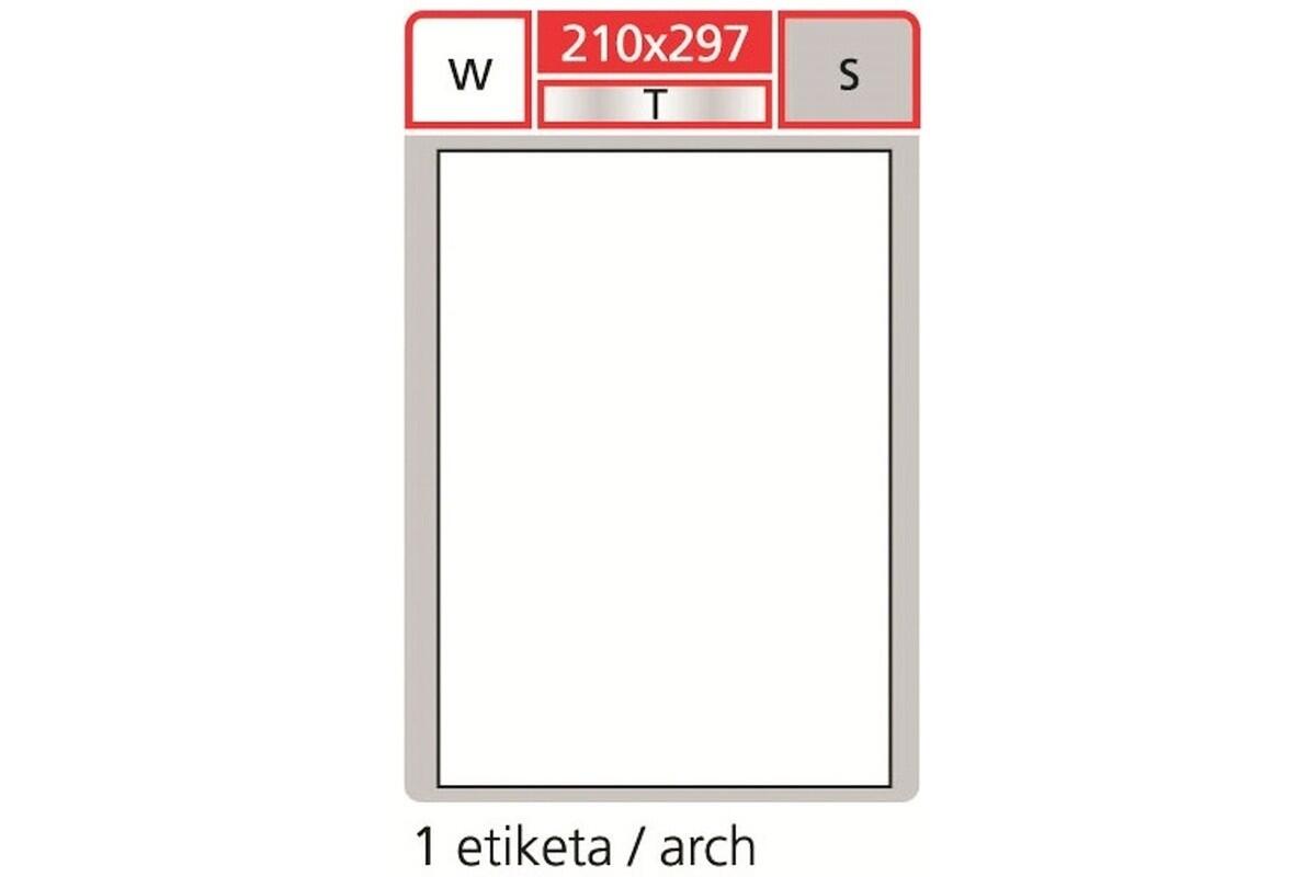 Etikety odolné S&K Label, 210 x 297 mm, arch A4, PET fólie, 20 listů, stříbrné