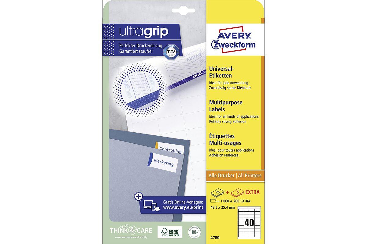 Etikety univerzální Avery Zweckform, 48,5 x 25,4 mm, arch A4, 25+5 listů, bílé