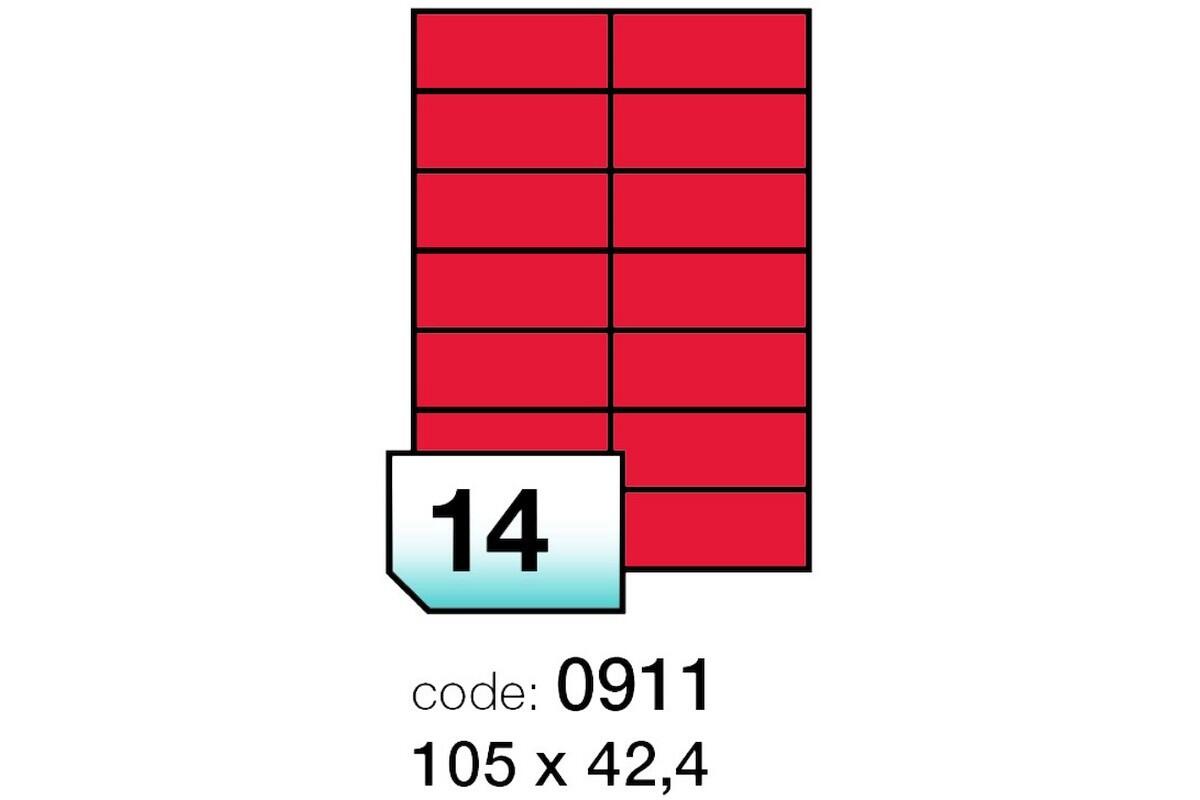 Etikety univerzální Rayfilm, 105 x 42,4 mm, arch A4, 100 listů, červené
