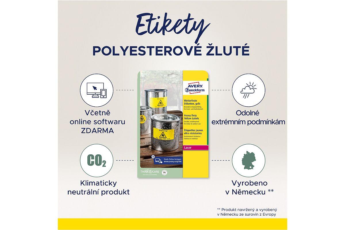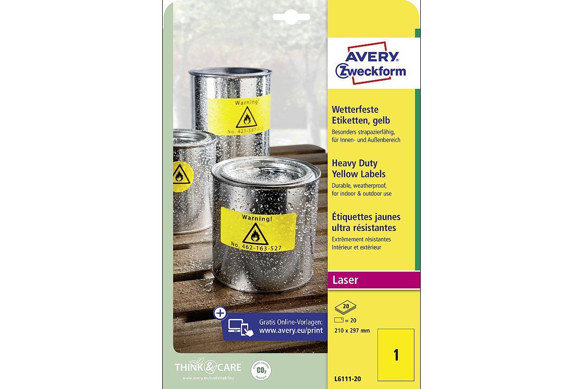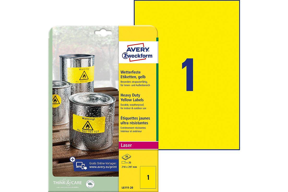 Etikety velmi odolné Avery Zweckform, 210 x 297 mm, arch A4, 20 listů, žluté